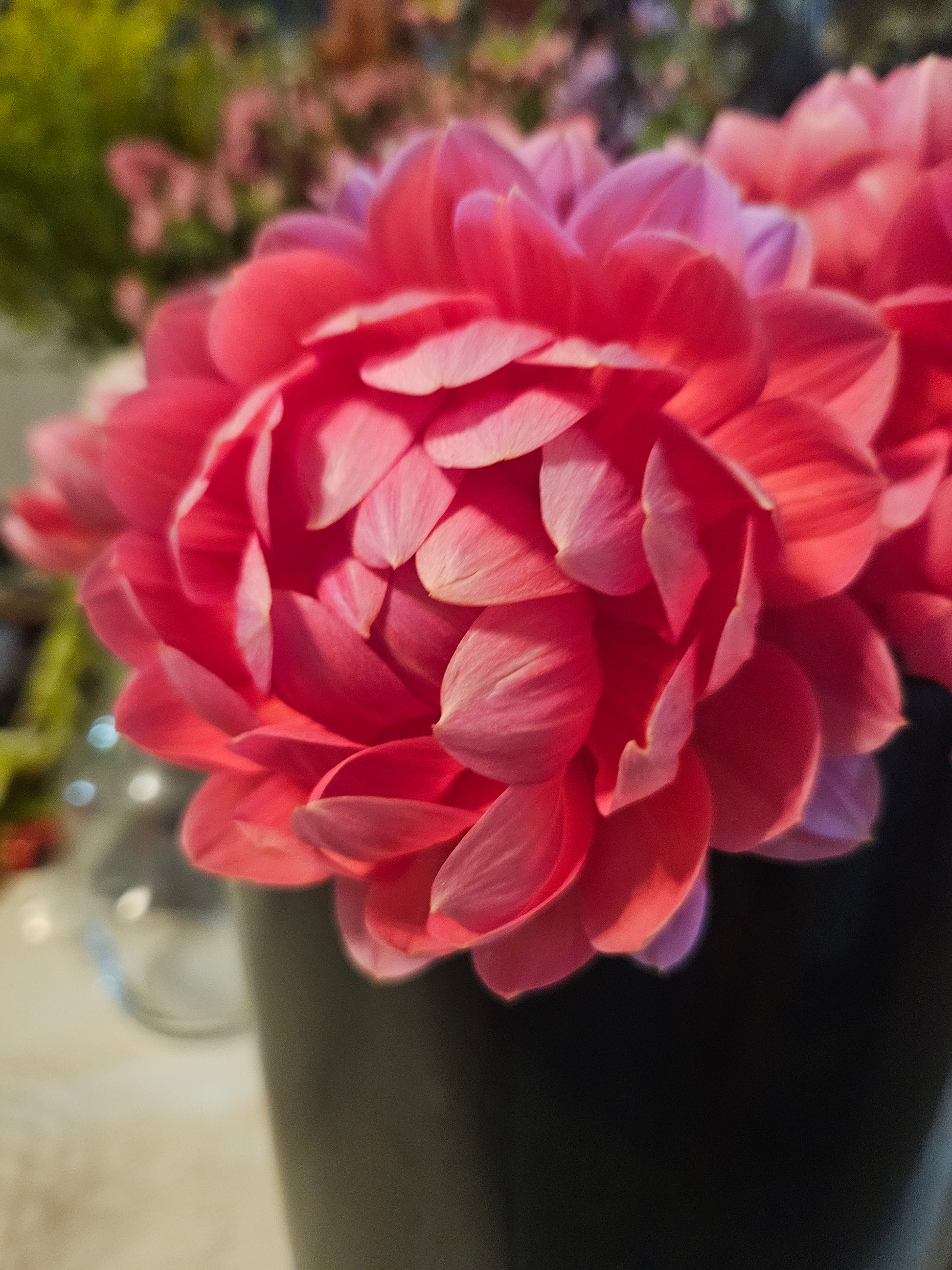 Hollyhill Daydream is one of the most wonderful waterlily form dahlias. Petals open in the sun and close up a bit in cooler temperatures creating a dreamy shaped dahlia. Deep pinkish orange blooms