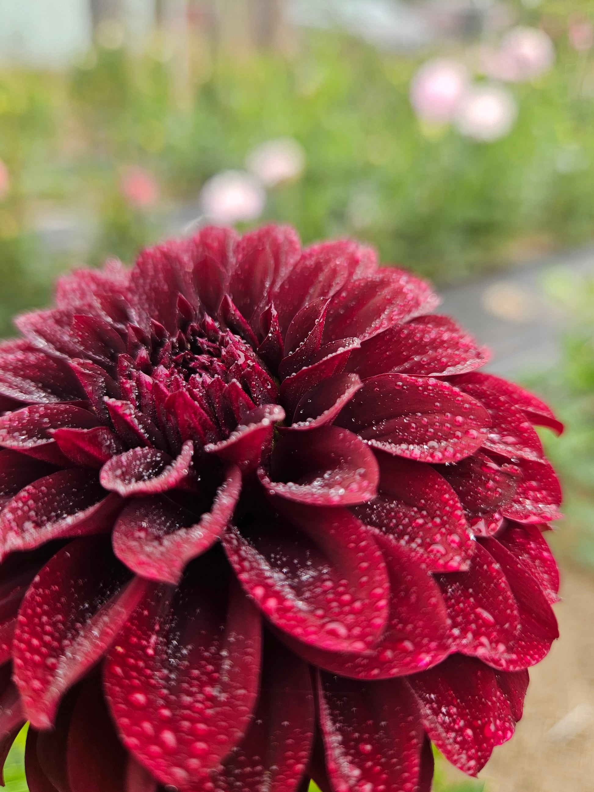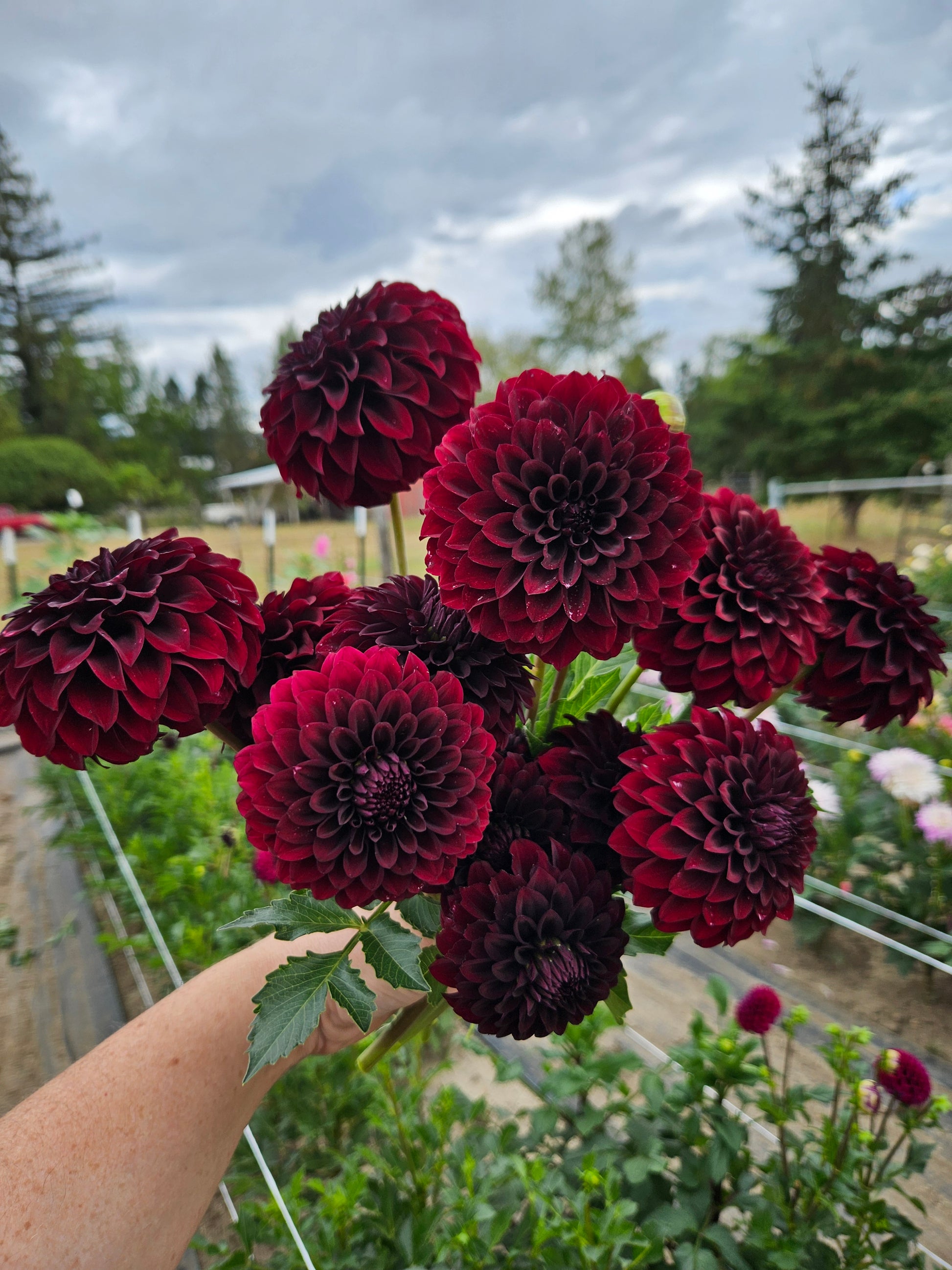 Lights out is one of my favorite almost black dahlias. Deep deep red and one of the longest blooming dahlias, always the last variety to succumb to cold weather in the fall.